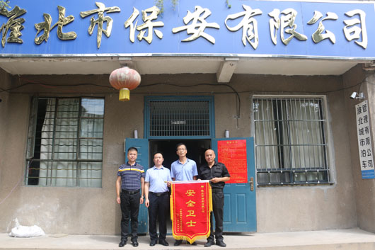 2018年9月3日,安徽相邦復合材料有限公司總經理攜保衛部、辦公室負責人一行來到淮北市保安有限公司贈送錦旗和感謝信,對受臺風“溫比亞”影響,仍堅守在一線工作崗位的趙世軍、許成良、吳蘇林、王福利、張斌等五位保安隊員給予高度贊賞和充分肯定。