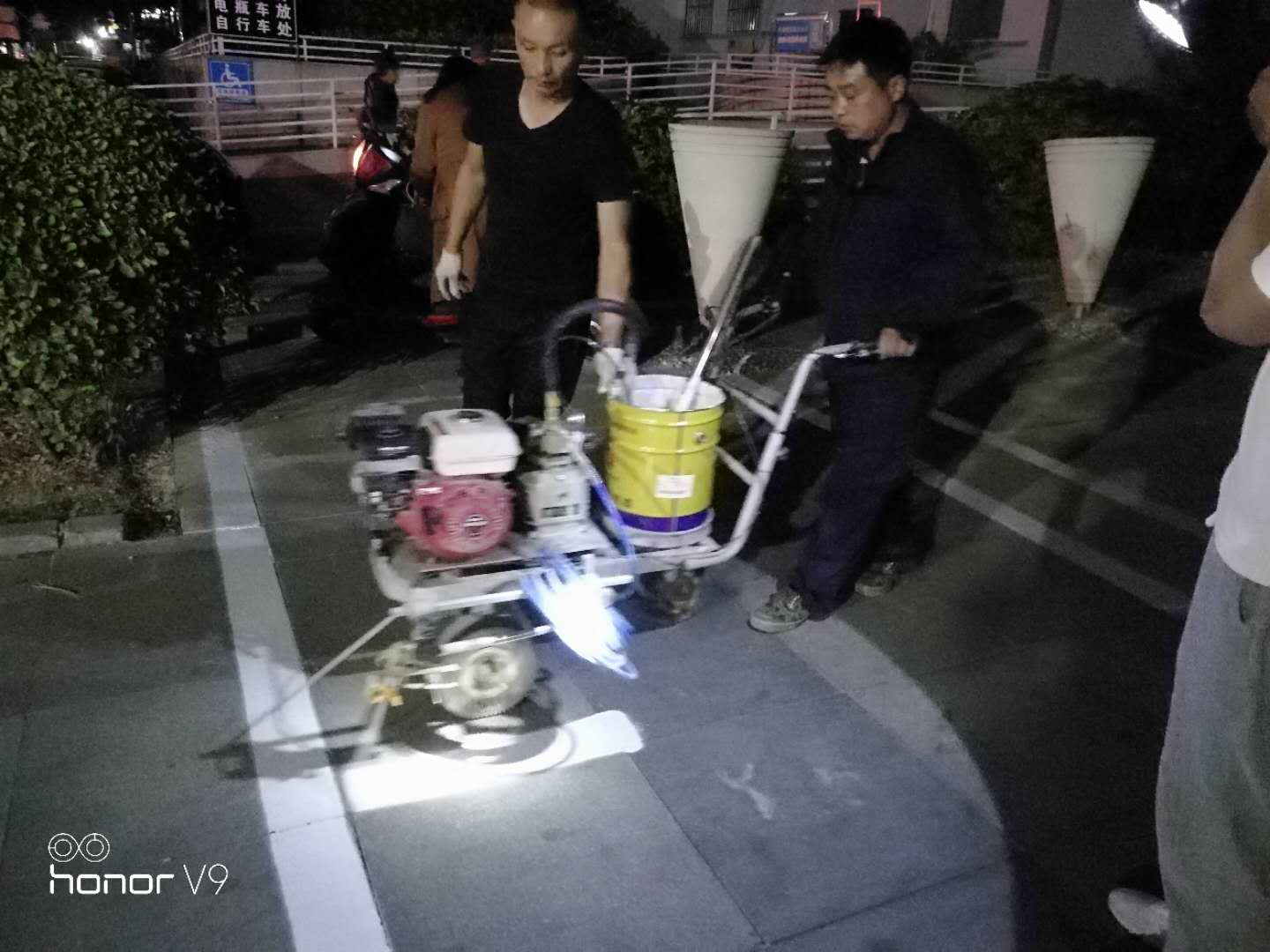 由于主城區停車泊位緊張、車輛停放密集,施工必須在停放車輛駛出清場后,才能進行。為了不影響市民停車避開停車高峰,公司工作人員需要在凌晨乃至半夜進行劃線任務。雖然辛苦,但是我們畫起線來一絲不茍,為了減少雨水對停車線的侵蝕,畫停車線時反復多次施劃增加耐久度,為了整齊美觀,施劃每一條線時都會用標尺認真的比量。看似簡單的復描劃線工作,實際上仍存在很大的工作阻力,周邊商戶的不理解,甚至謾罵和投訴對我們工作人員的工作造成了很大的困擾,但是我們依舊積極協調、解釋和溝通,在國慶節前,圓滿的完成了復描任務,讓原本斑駁的車位線煥然一新。
