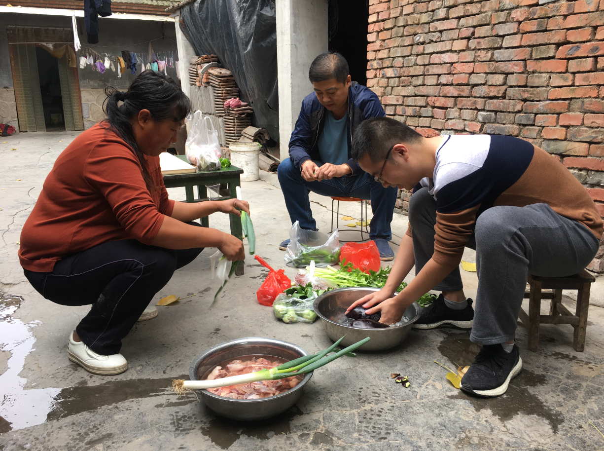上午交投公司一行于當地菜市場選購了蔬菜、肉類等食材,到貧困戶家中走訪慰問,和貧困戶一起準備了午飯;中午,通過和貧困戶同吃一鍋飯,拉家常,溝通交流感情,進一步了解了陳素梅家中的家庭情況及思想動態;下午幫扶小組幫助陳素梅打掃院,改善環境衛生。