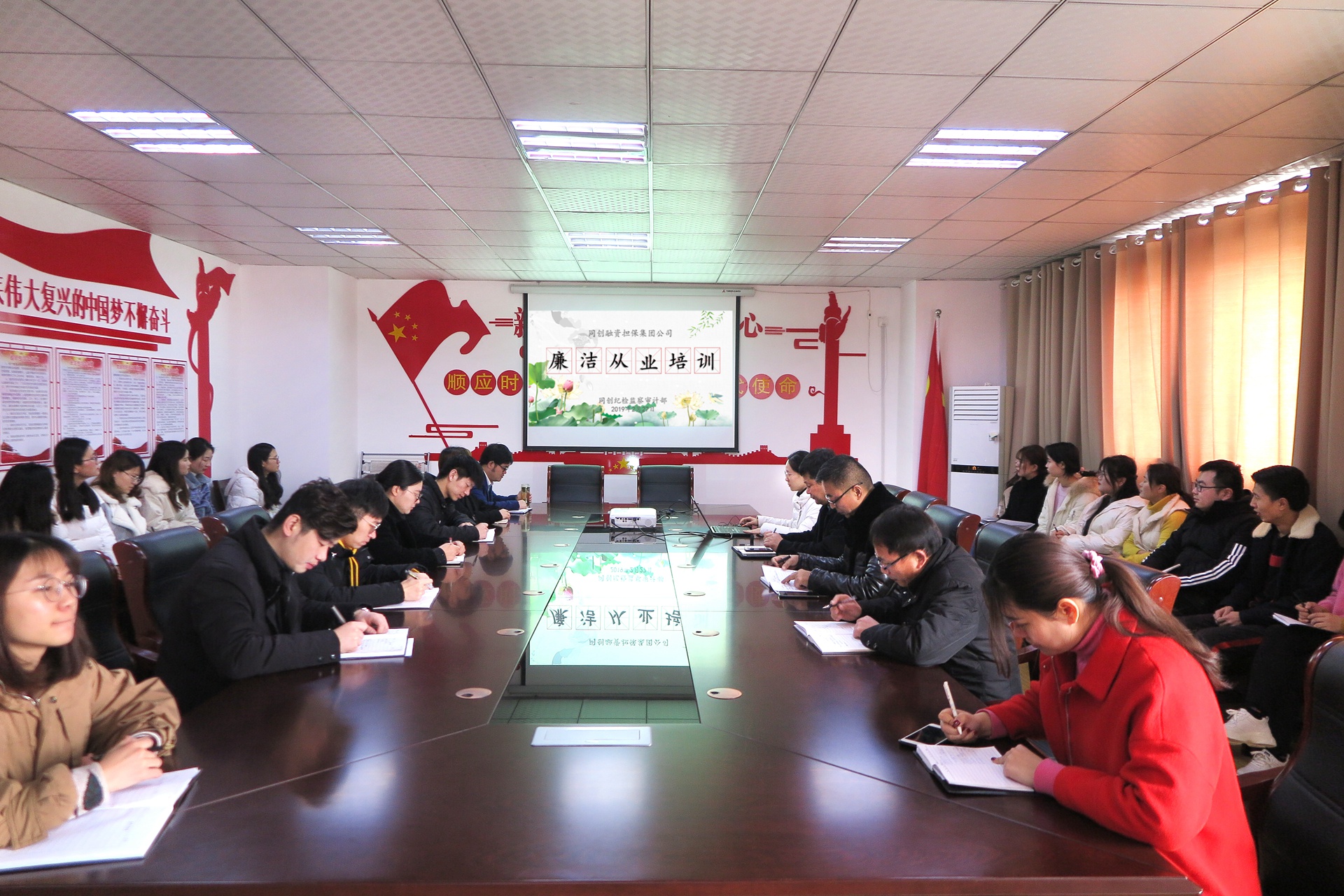 2019年2月27日下午,集團公司派駐同創擔保公司紀檢監察審計部在三樓會議室開展“廉潔從業”培訓,同創擔保公司領導班子成員、各部室負責人、全體工作人員參加培訓。
