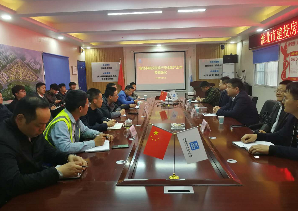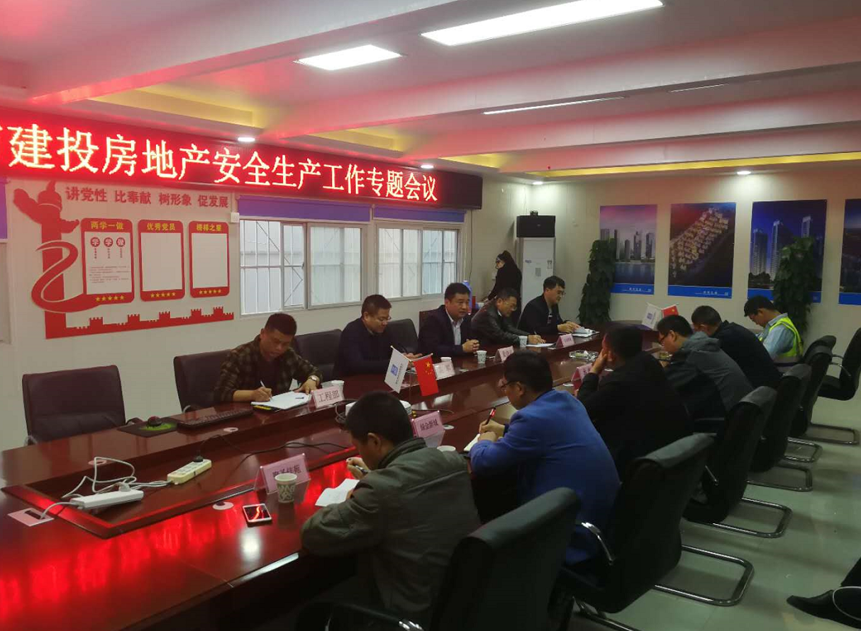2019年3月27日,房地產公司在綠金花園項目施工現場召開安全生產專題工作會議,安排部署房地產公司工程項目安全生產管理工作。房地產公司領導班子成員、工程部負責人、生態景觀公司、綠金花園項目部、綠金新城項目部、盉街項目部、聚圣佳苑項目部、金鼎世家項目部負責人參加了會議。