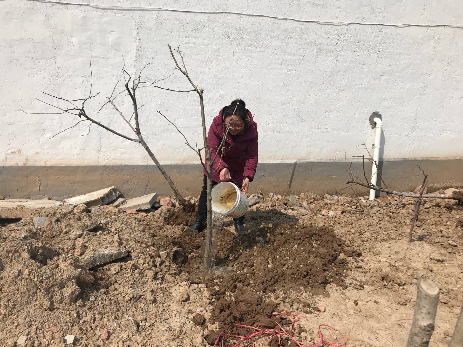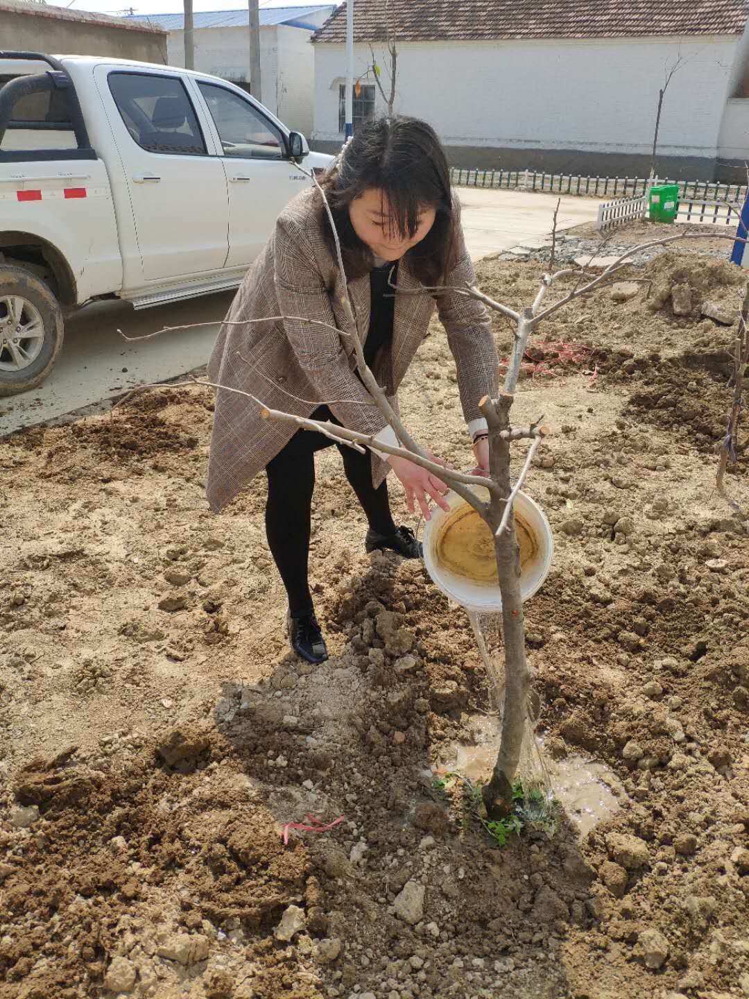 生態景觀公司扶貧小組一行4人,3月25日驅車帶著5棵蘋果樹苗來到火神廟村呂秀英老人家進行樹苗補種。大家分工植樹,有的挖坑,有的扶樹,有的培土,有的澆水,每道工序有條不紊,一片繁忙。扶貧小組成員不辭辛苦,以實際行動投身到扶貧工作中去,為貧困戶獻出一份愛心,點燃一盞希望。助力貧困戶加快脫貧致富步伐,共同邁入全面小康。