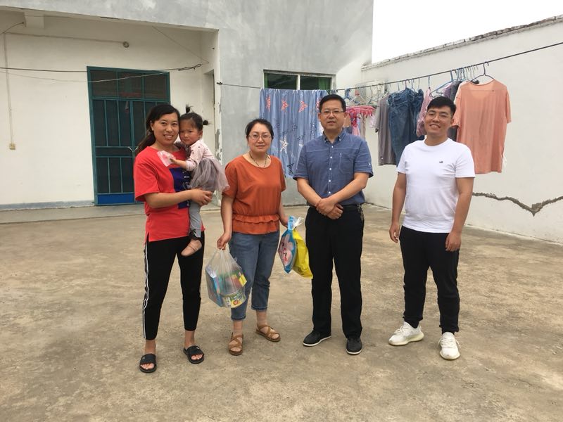 5月28日 ,扶貧四組成員前往劉橋鎮火神廟村張云龍、黃景玉兩戶貧困家庭走訪,為貧困兒童送去了“六一”的關懷,提供了衣物、書籍和夏季驅蚊用品,讓他們能夠安心學習,快樂成長;同時為黃景玉老人送去了藥品和夏季驅蚊用品,與老人聊聊家常,并溫馨提醒老人天氣炎熱,注意防暑。
