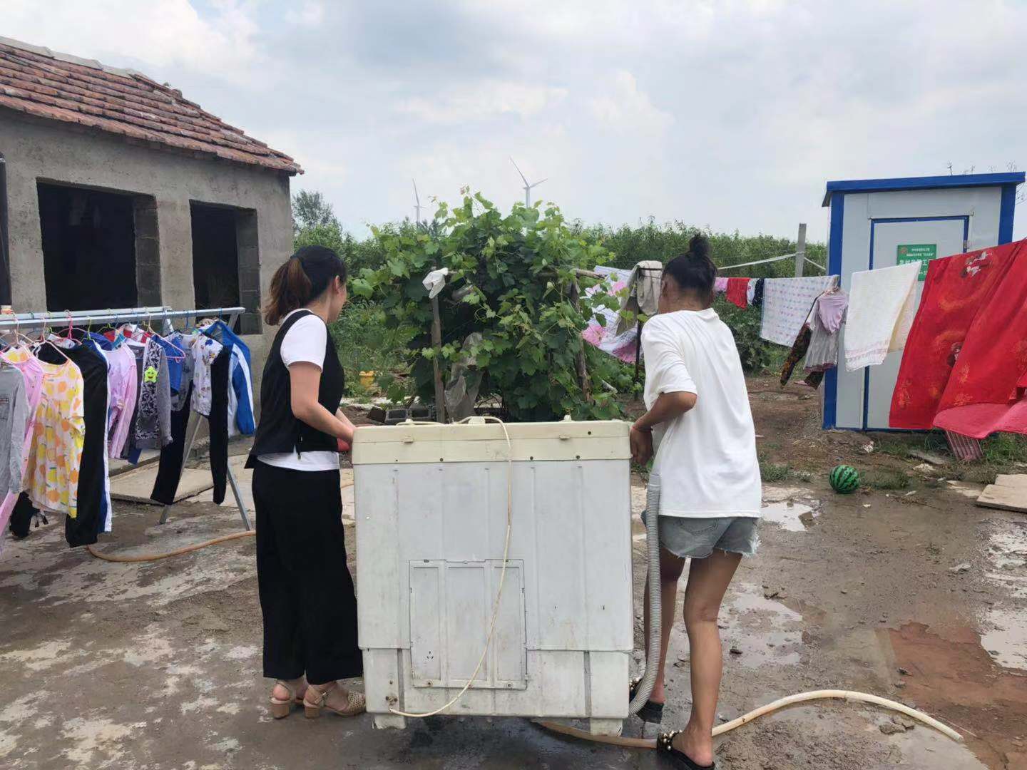 在貧困戶家中,商貿公司幫扶小組成員幫助他們整理家中物品,宣講國家扶貧政策并告知貧困戶即將為她送去50只雞苗的好消息,臨行前還叮囑高溫防暑,近期雷雨天氣較多,注意安全。