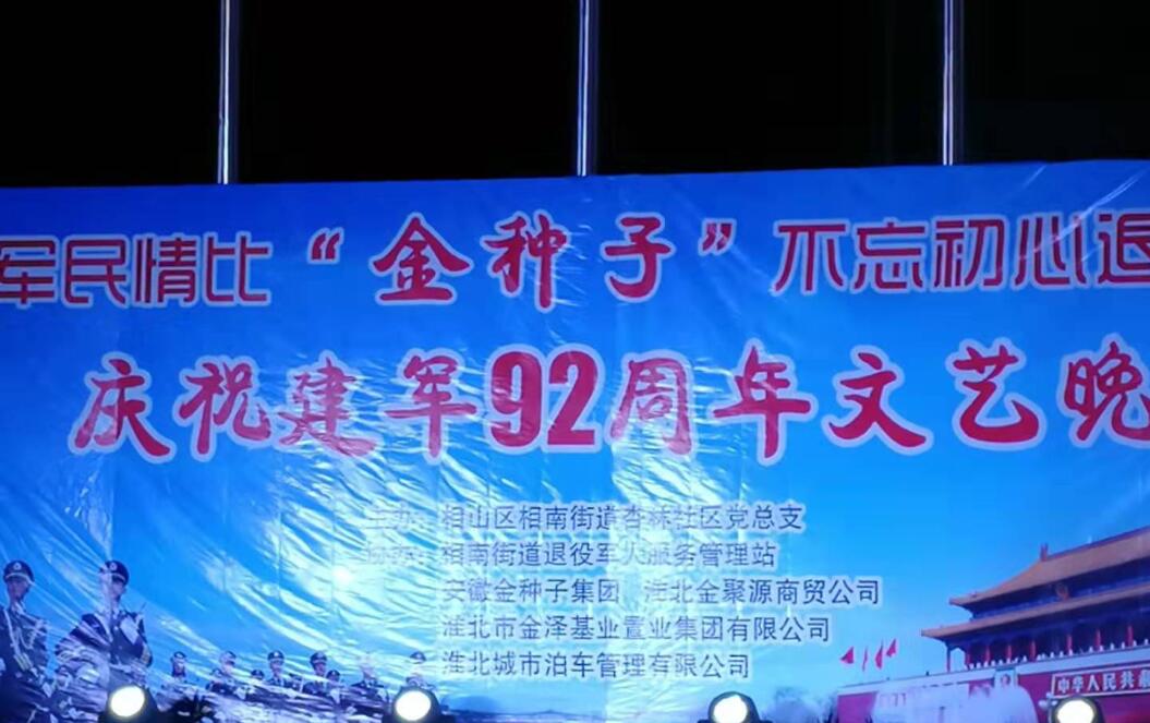 軍愛民、民擁軍,軍民魚水情義深,為深入貫徹落實黨的十九大精神,加強軍政軍民共建活動,7月28日晚在建軍92周年來臨之際,相南街道杏林社區主辦、城泊公司等單位協辦的慶祝建軍92周年文藝晚會在震天的鑼鼓聲中拉開序幕。相山區人大副主任、相南街道黨工委第一書記朱正春同志,相山區退役軍人事務局局長朱超武同志等領導親臨現場觀看演出。