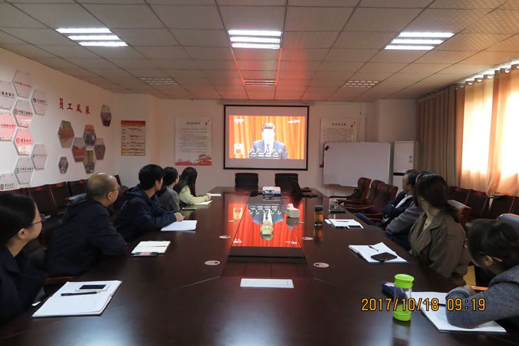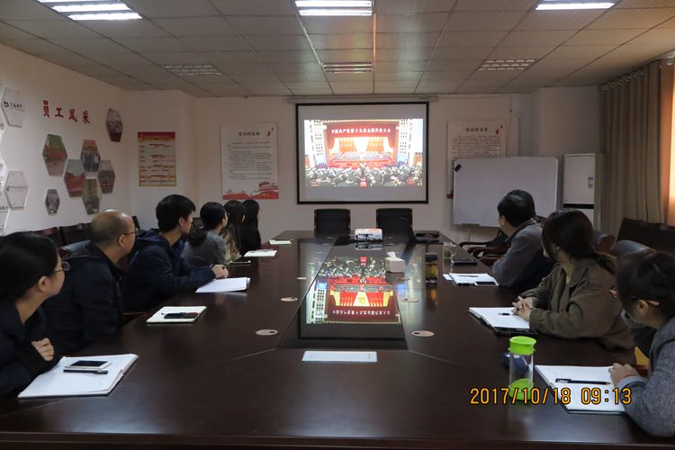 2017年10月18日上午9:00,中國共產黨第十九次全國代表大會在北京開幕。淮北市同創融資擔保集團有限公司黨支部全體黨員干部在會議室集中收看會議實況直播,認真聆聽、學習習近平總書記代表十八屆中央委員會向大會所作的報告。
