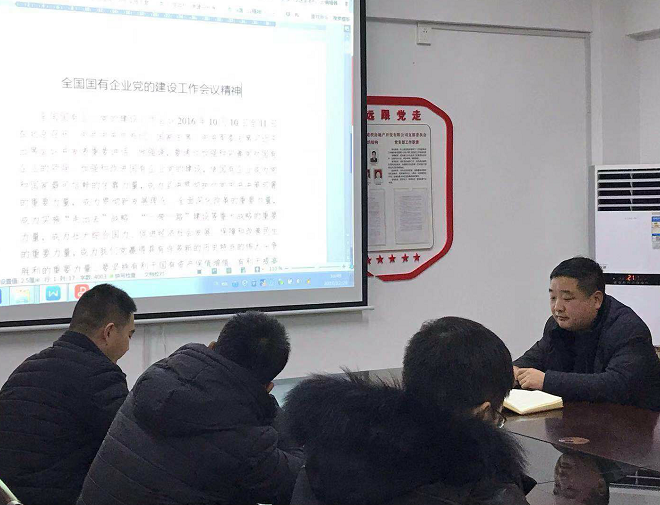 2018年12月29日下午,房地產公司召開支部學習會,學習傳達全國全省國有企業黨的建設工作會議精神。
