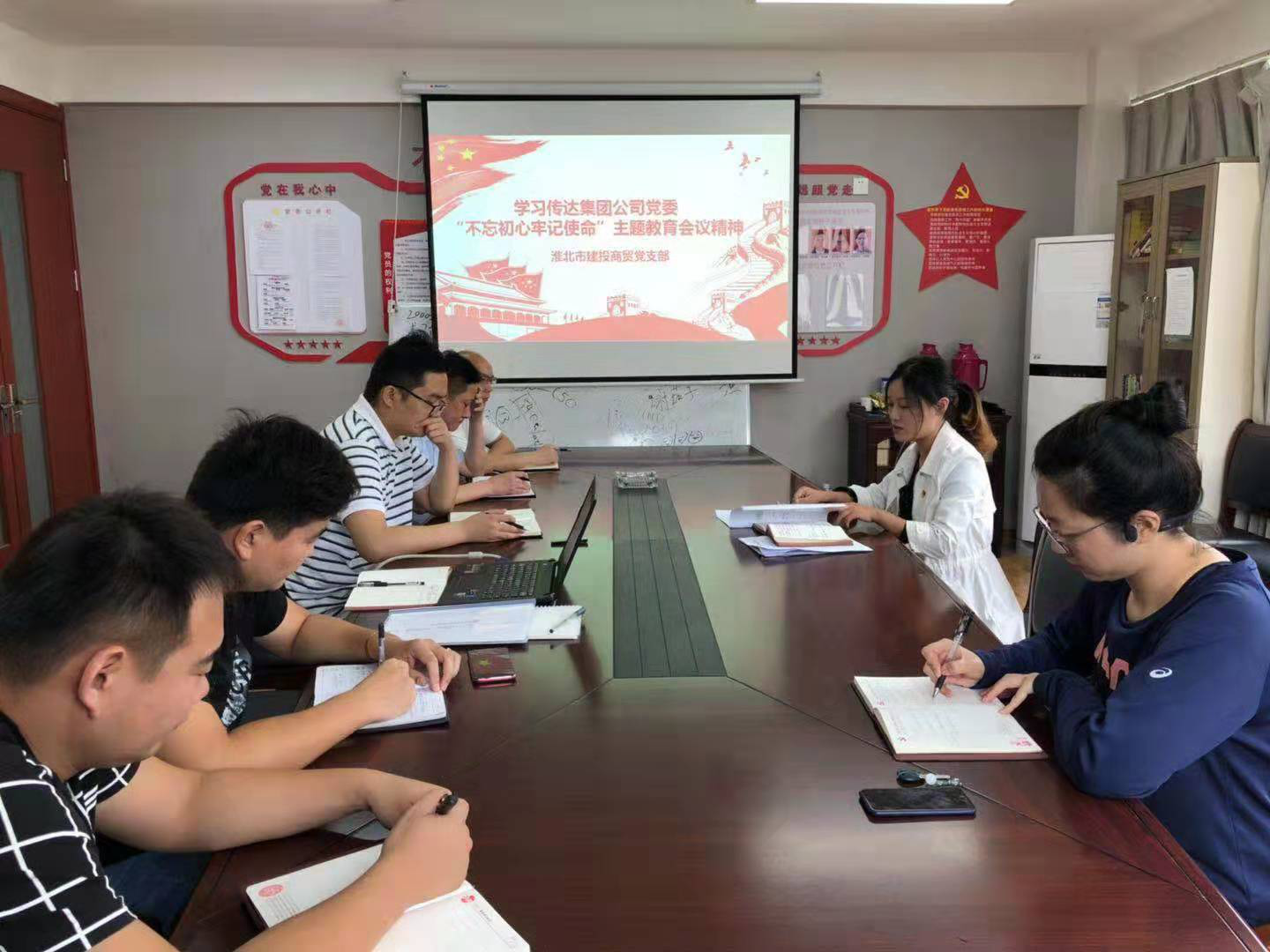 會議傳達了集團公司“不忘初心、牢記使命”主題教育工作會的會議精神,學習了《淮北市建投集團黨委關于開展“不忘初心、牢記使命”主題教育的實施方案》,并結合實際,討論商貿黨支部“不忘初心、牢記使命”主題教育實施措施初步方案。