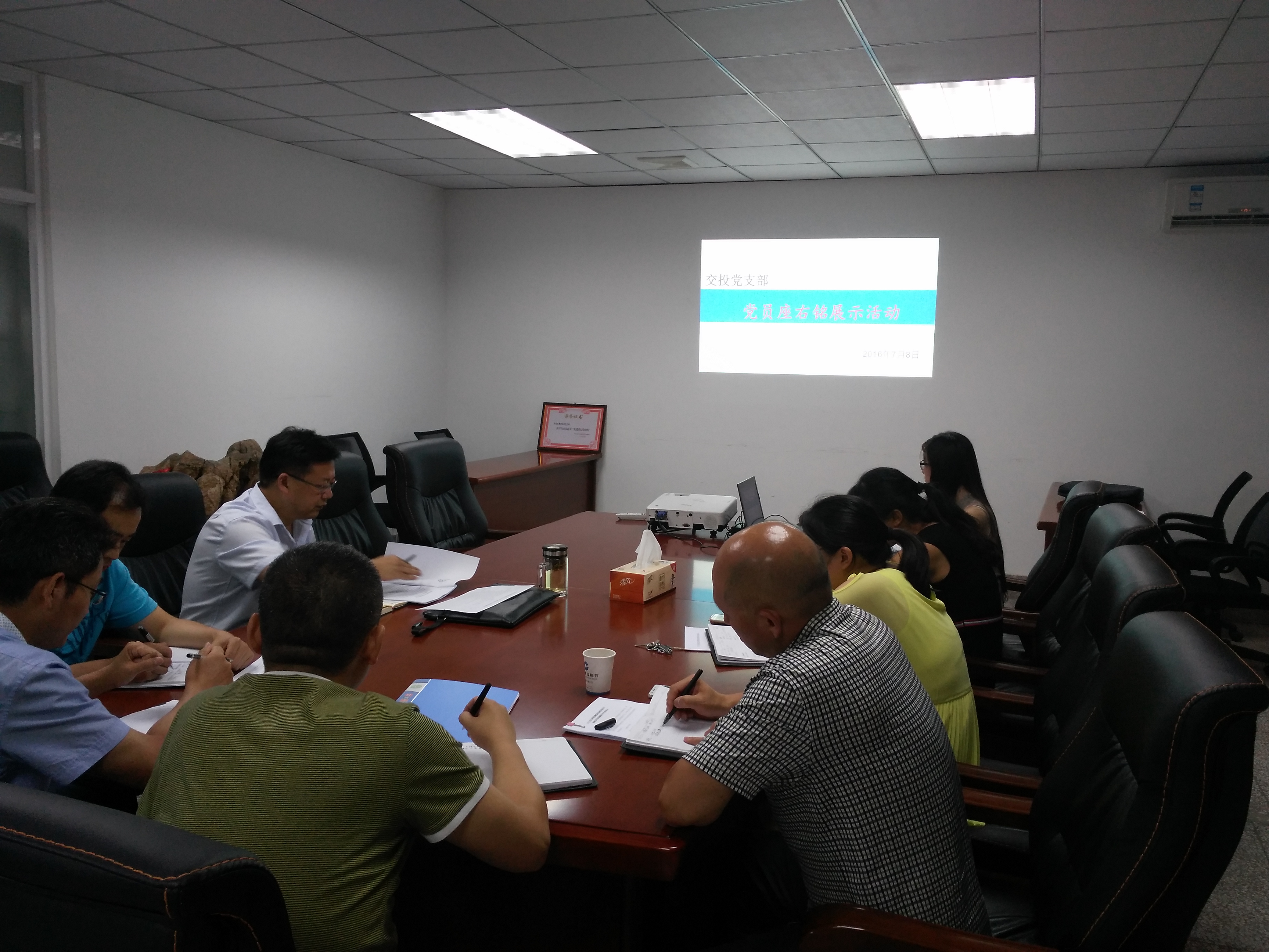 7月10日上午,市交投黨支部組織支部全體黨員在會議室開展“黨員座右銘展示”活動,與會黨員紛紛向大家展示自己的座右銘,分享心得體會。