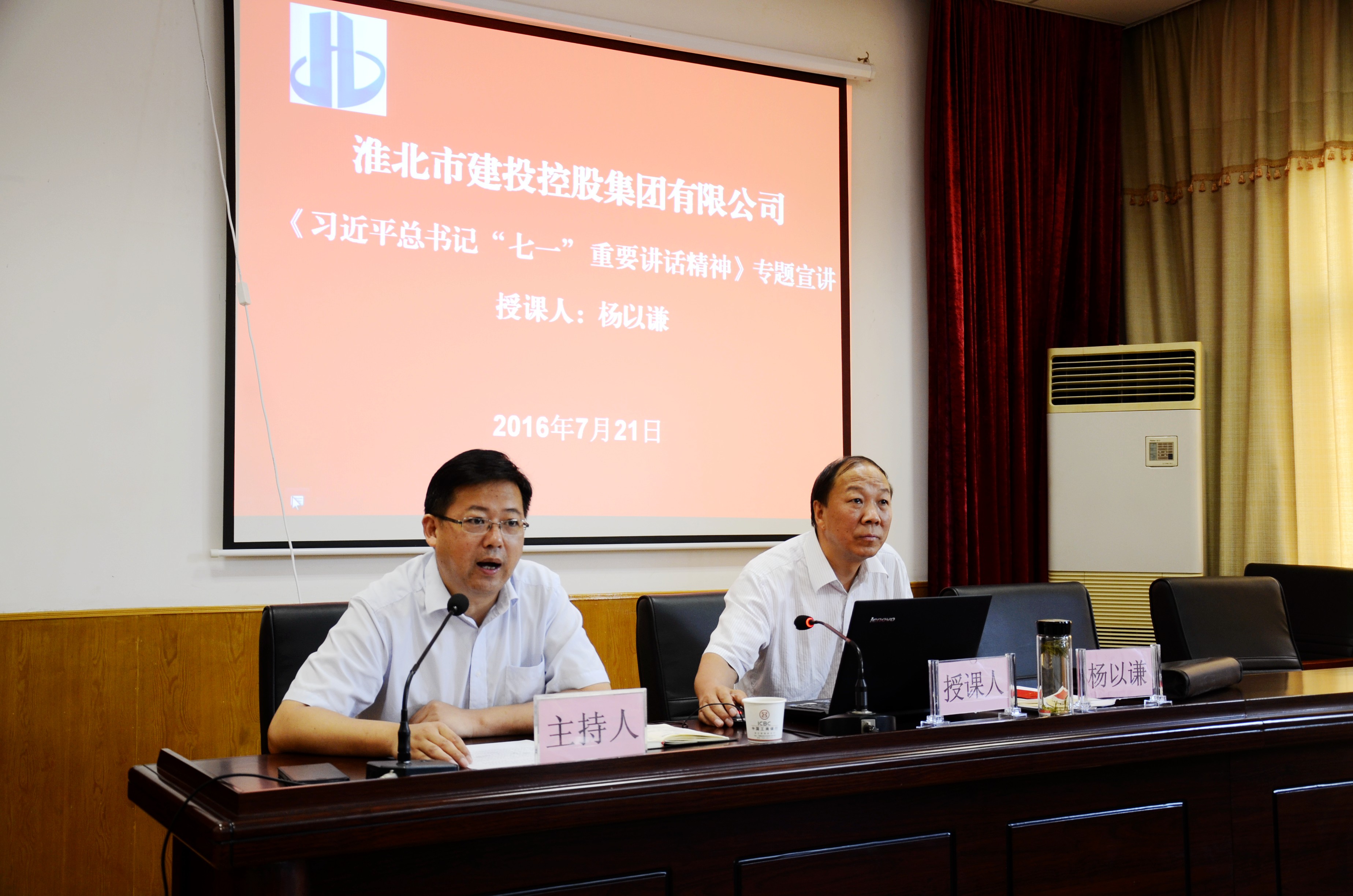 7月21日上午,市建投集團在4樓會議室舉辦了《習近平總書記“ 七一” 重要講話精神》專題講座。市建投集團副總經理張立哲主持會議,集團公司各支部黨員、預備黨員、積極分子聆聽了講座。