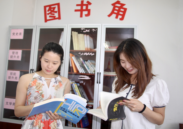 “書籍真全,有業務的,有文學的,這圖書角設置的真好!”“是啊,據說以后公司還會給我們辦理繼續教育呢。”日前,在房地產公司會議室,兩名剛從項目上回來的職工邊翻看書籍,邊開心地聊著。