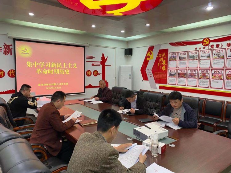 4月22日下午,為持續推進黨史學習教育走實走深,保安公司召開新民主主義革命時期歷史專題學習會,公司支部班子、中層管理人員參與本次學習。