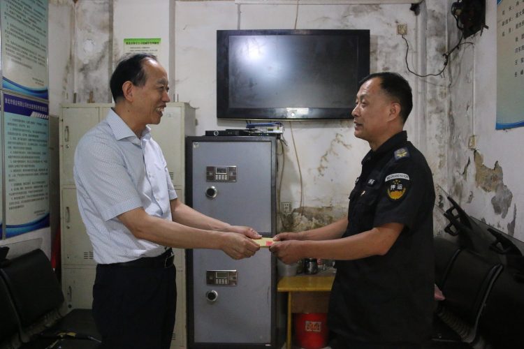 建黨100周年臨近,2021月6月30日10時,集團公司黨委委員、副總經(jīng)理唐世軍在淮北市保安有限公司黨支部副書記徐彥超的陪同下來到押運一中隊中國銀行看望慰問保安公司困難黨員的閆新杰黨員同志,送去黨組織的關(guān)懷和溫暖。