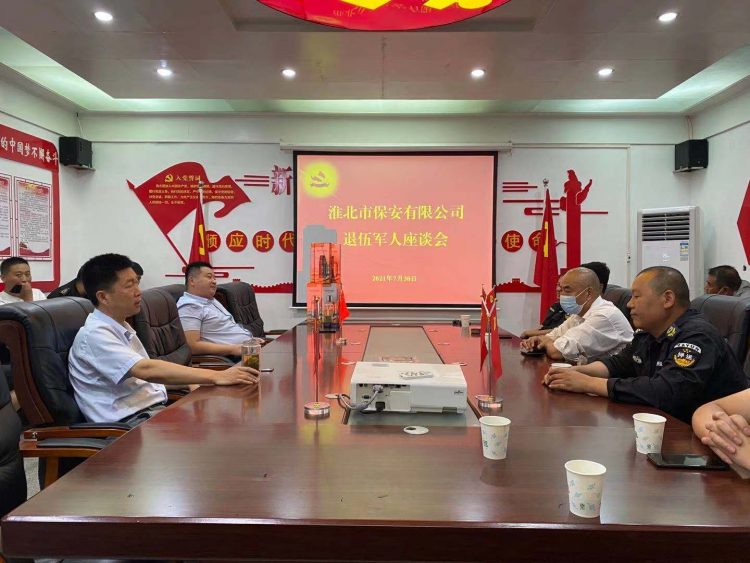 中國人民解放軍建軍94周年即將來臨。 2021年7月30日,淮北市保安有限公司組織開展了退伍軍人座談會,憶往昔崢嶸歲月稠,看今朝奮進鑄輝煌。公司共計約30人參加了座談會,大家歡聚一堂,共話難忘的軍旅生涯。